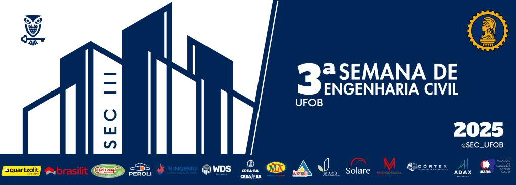 Prezados, vai ocorrer a III Semana de Engenharia Civil da UFOB no período de 12 a 16.05.2025.