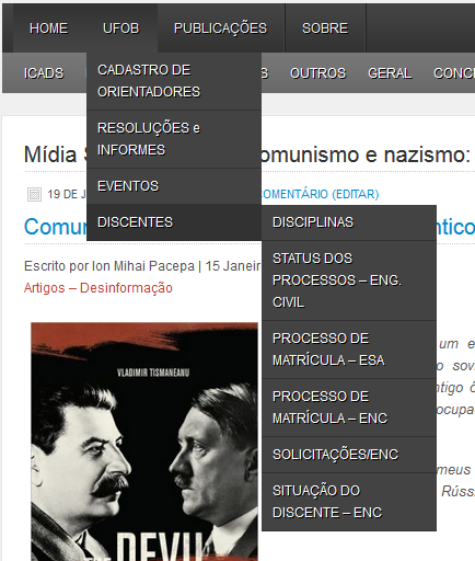 Informo que alterei as abas que fazem parte da vida discente, ou seja, agora existe uma aba chamada Discentes, onde se encontram vários abas relacionadas convosco. A Aba Situação do Discente se encontra neste local.
